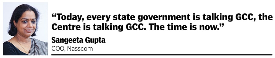 And the time may have come for that to happen. At Nasscom, the effort to promote these centres started with the Nasscom captive council initiative in 2010, says COO Sangeeta Gupta. Then the name changed to GIC, or global in-house centres, and then eventually rechristened as global capability centres or GCCs around 2016, at a Nasscom meeting, Gupta says.