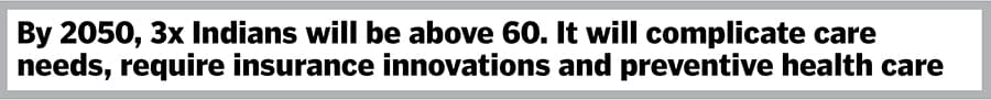 However, this landscape is coloured differently for India, where our demographic dividend of the younger nation is rapidly changing, and we stare at 3x Indians above 60 by 2050. This shift and uneven distribution of resources, which have always plagued us, will complicate care needs, urging innovations in insurance, preventive health and retirement planning. This increase in life expectancy from the 70s to the 90s, along with a lower population replacement level, will inevitably create the world’s largest pool of aged population, with fewer and fewer caregivers. Are we as a nation ready for it?