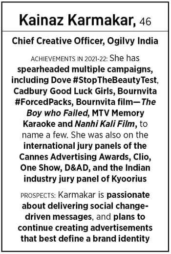 Having worked in the field for 23 years, Kainaz Karmakar, chief creative officer of Ogilvy India, has won 40 accolades for her out-of-the-box, brave and innovative approach to advertising