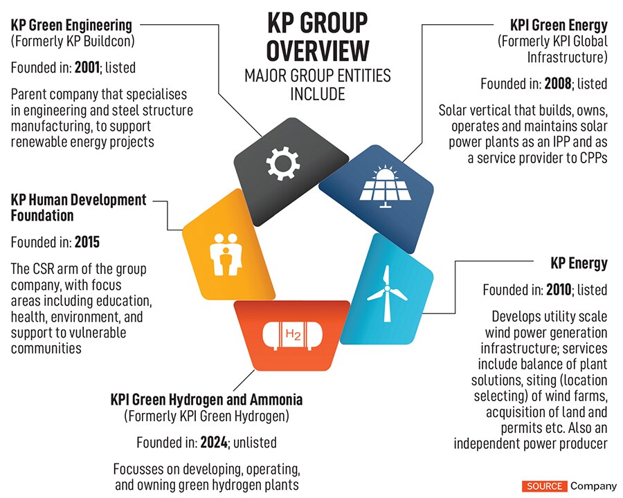Patel established KPI Green Energy in 2008, followed by KP Energy in 2010. The former, the solar vertical, is the bigger cash cow for the group today. It recently achieved zero-debt status as per a regulatory filing, and reported a 98 percent year-on-year surge in profit at Rs66.10 crore in the quarter ended June 2024, up from Rs33.3 crore in the same quarter last year. As per the BSE on August 29, KPI Green Energy has a market capitalisation of around Rs11,300 crore.