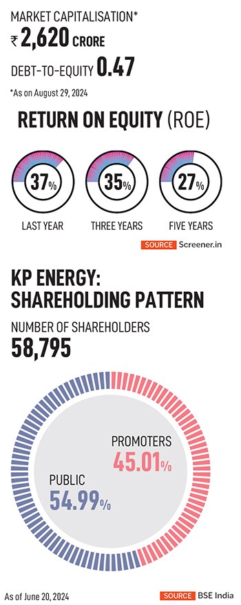 As per data from BSE, KP Energy’s revenues have increased more than six times in four years, from Rs74.12 crore in FY20 to Rs468.69 crore in FY24. Net profit in the same period has also jumped from Rs1.10 crore to Rs58.65 crore. The market capitalisation of the company, says Patel, “has grown almost 100 times in the last eight years, from Rs24.26 crore when it was listed on the SME platform of the BSE in 2016, to around Rs2,620 crore [as on August 29, 2024]".