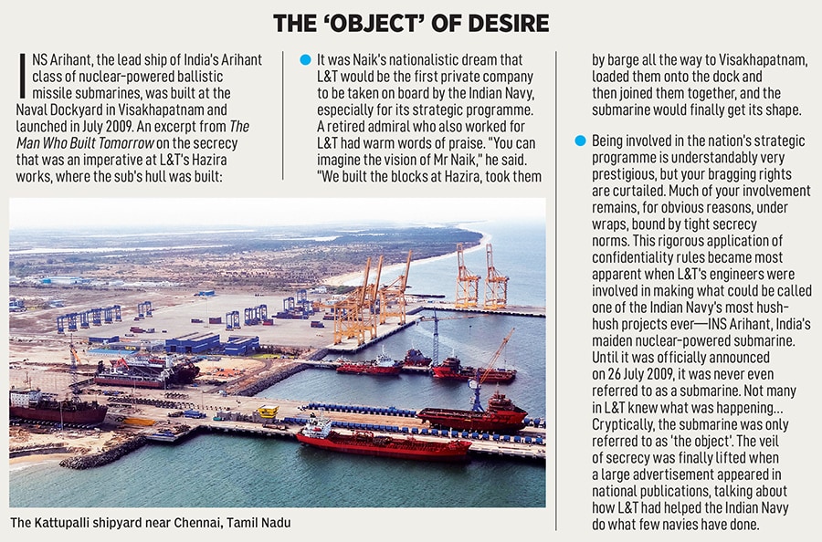 Naik more than survived. He galloped ahead, out of AC offices and onto the grease and grime of the Powai shopfloor. In two decades, he was at the forefront of transforming marshland of Hazira in Gujarat into a mega engineering complex. This would be the site out of which India’s first hydrocracker reactor with the Made in India label was manufactured in 1989-90. Close to a decade later came the nuclear reactors. And then the making of the hull of India’s first nuclear-powered submarine, INS Arihant.