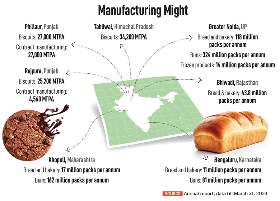 The growth has come on the back of a robust manufacturing prowess. The company produces over 50 million biscuit packs every month it makes 10 million bread loaves per month around 3.5 million buns are baked per day and in FY23, and around 3.75 lakh packs of English Oven are sold every day.