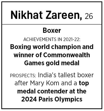 “The World Championship tops everything else till now. It’s completed the full circle from the time I won the world junior crown," says Zareen. “But, for me, the best is yet to come because my ultimate dream is to win the Olympic gold." 2023 will be a busy year in her quest for the elusive title, beginning with the World Championships in Delhi and the Asian Games in China that will serve as a qualifier for Paris 2024. Which means more of getting into the zone and shunning “normal life"—hanging out with friends, going shopping, or skipping the biryani to watch her weight (“I’m a big foodie," she says).