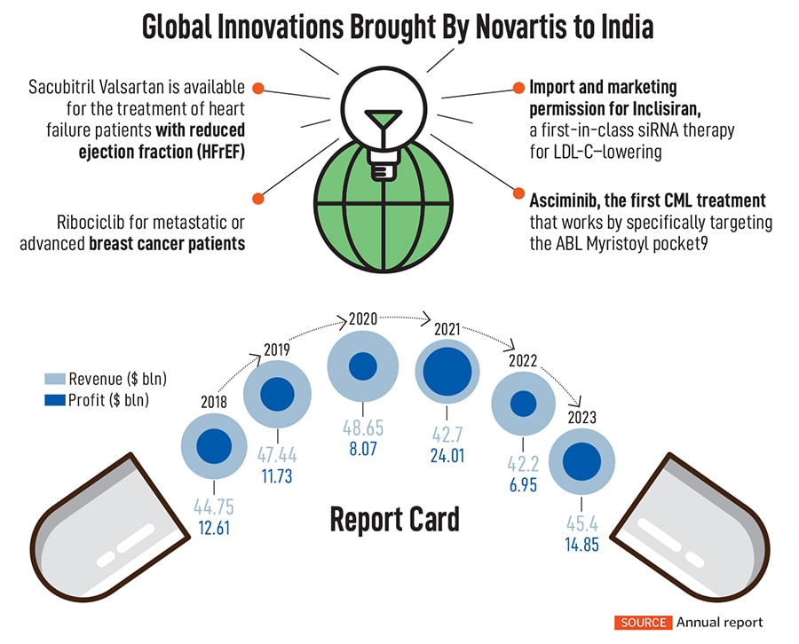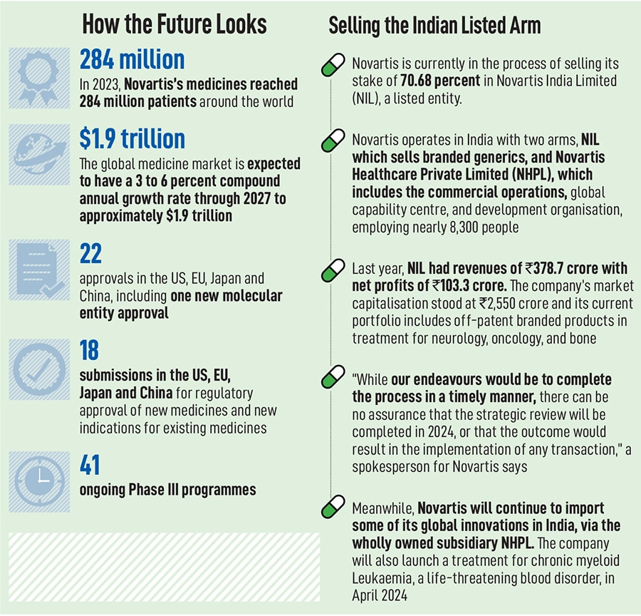 Today, Novartis operates in some 108 markets, with 40 percent of its revenues coming from the US alone and every year, its medicines reach over 284 million patients. The company also has drug development centres in East Hanover in the US and Switzerland, apart from Hyderabad. In India, the Swiss multinational functions through two different units: Novartis India Limited (NIL), which is listed on the stock exchanges, and Novartis Healthcare Private Limited (NHPL). NIL is currently in the process of being sold while NHPL, which employs over 8,300 people, will begin to play a more significant role in the global operations.