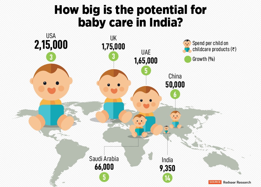 “While the large proportion of those are born to families in low-income segments, there is still a substantial number born to households that are middle and upper income," adds Dutta of Third Eyesight. “Also, as incomes are growing and the size of families is reducing, the budget available per baby is climbing, which is obviously a strong driver of market growth."