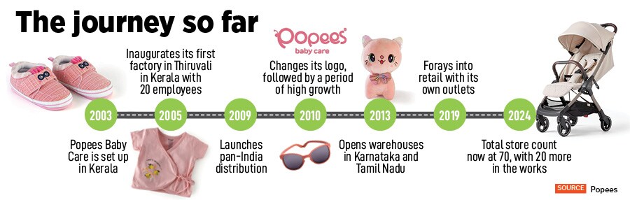 “It was God’s intervention," Thomas says about that time. “If it weren’t for that money, Popees wouldn’t have existed today." Today, Thomas runs Popees Baby Care, a business that rakes in well over ₹100 crore a year and has become one of Kerala’s best-known brands in a little over two decades. The company produces everything from clothes to soaps and diapers, retailing them through 70 exclusive outlets and some 8,000 other retail outlets across the country.