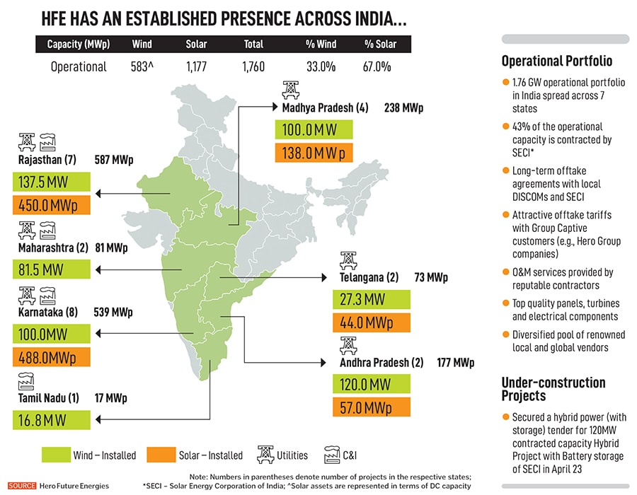 HFE’s revenues in FY23 were Rs 1,539 crore versus Rs 1,430 for the previous year. Losses for the year ended March 31, 2023, were Rs 325 crore versus Rs 576 crore for FY22, according to a rating upgrade note by Crisil. In the March note, Crisil, a credit rating provider, upgraded its rating of HFE from A/Stable to A+/Stable, citing the strength and continued backing of the Hero Group as an important reason. Crisil also noted that there was a 3 percent improvement in the performance of HFE’s renewables portfolio in FY23 versus FY22.