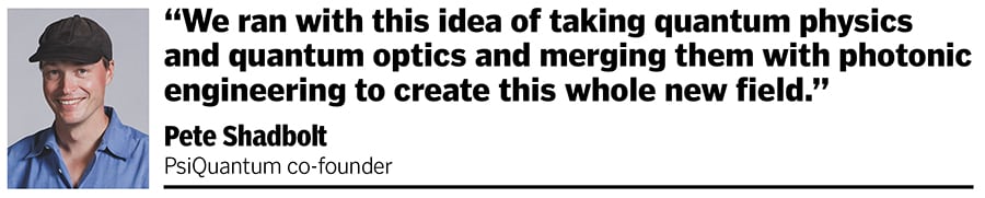 Silicon photonics—the ability to switch light in silicon chips—was catching up to the point where they could plausibly make a small quantum computer. But they needed millions, ideally billions, of these switches. With another of Rudolph’s PhD students, Mercedes Gimeno-Segovia, Shadbolt and their team succeeded in 2014. “That [paper] was the foundation for PsiQuantum," says O’Brien. “We had this architecture that we believed satisfied what I had been trying to do all the way along, like back in the Sydney days: How do we leverage the semiconductor industry to make a quantum computer."