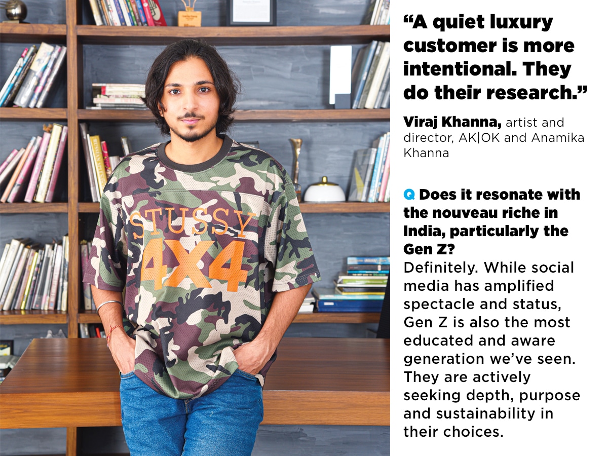 For Viraj Khanna, an artist and director of fashion brands AK|OK and Anamika Khanna, the spotlight on quiet luxury is not just a natural response to the “performative culture” on social media so prevalent nowadays, but also about knowledge and impact. “People are beginning to crave something more honest; not necessarily simpler, but more meaningful. People today can learn about the origins of what they wear, how something is made, and what it stands for, often with just a few clicks. This kind of awareness is powerful.”