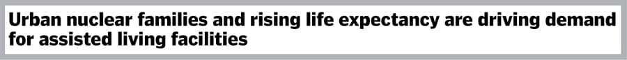 Urban nuclear families and increasing life expectancy are driving demand for assisted living facilities that offer a mix of independence and support. This trend reflects broader societal changes and the need for specialised care solutions that traditional hospitals cannot provide.