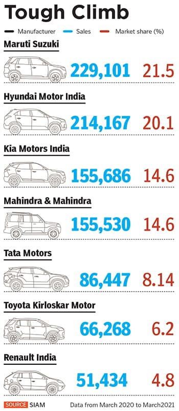 The trend towards bigger-looking SUVs had also tempted Mahindra to spread itself too thin in the SUV business, creating a plethora of products that it had hoped would win the market. From entry-level SUVs to compact sedans and MUVs, its vehicles included unsuccessful models such as the Quanto, a smaller version of the Xylo, the TUV300, the KUV100, and the Marazzo. “Market share is of importance to us as well," Jejurikar says. “How you get market share has to be a strategic call. In the desire to get market share, if you try and do things where you’re not going to succeed, then you’re barking up the wrong tree because you’re going to get into segments where you don’t have a right to be in."