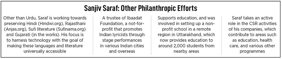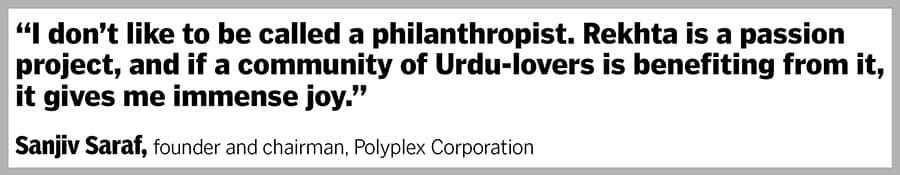 For Saraf, 64, Urdu has been at the centre of his attention in the past decade, through Rekhta Foundation, a not-for-profit organisation established by him to help preserve and promote Urdu literature.