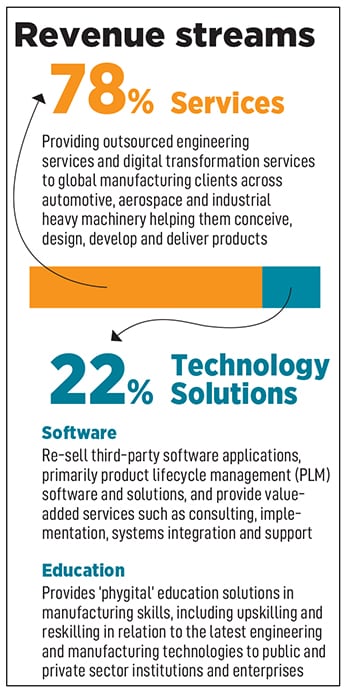 As of FY24, about 78 percent of its total revenue was from services and the rest from the technology services business (see box). “So what we do in tech solutions is not completely removed from what we do in services, our core offering. In fact, it adds to the value that we are delivering on the services side of the business," explains Savitha Balachandran, chief financial officer, Tata Technologies.