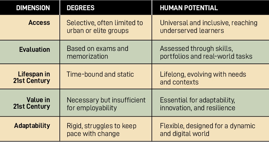 Degrees alone no longer guarantee readiness for a changing world. They remain necessary, but increasingly serve as proxies, not proof, of potential.