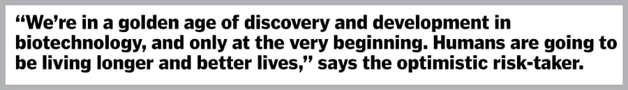 This optimistic risk taker is convinced that the market will turn in his favor. “We’re in a golden age of discovery and development in biotechnology, and only at the very beginning," he says. “Humans are going to be living longer and better lives." Let’s hope he’s right.