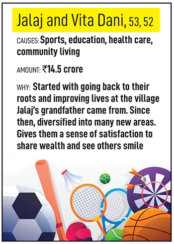 Today, Vita spends most of her time on philanthropic activities at the Dani Foundation. Jalaj, who serves as chairman of Addverb Technologies Private Limited and is on the board of many other organisations, including Reliance Foundation and HDFC, also takes time out to identify initiatives that the foundation wants to focus on.