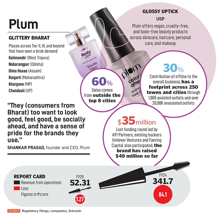 Affordability stopped being a concern in non-metros many years ago. “Thanks to lower rents and living expenses, they have more to spare on discretionary purchases," says Prasad, adding that the brands don’t need to be price warriors to win in such places. “It’s a myth that price is a deal breaker," he says, adding that the consumers mirror the behaviour of their urban counterparts. “They too want to look good, feel good, and be socially ahead," he says. Plum’s revenue numbers corroborate the boom story: From ₹52.31 crore in FY20 to ₹341.7 crore in FY24.