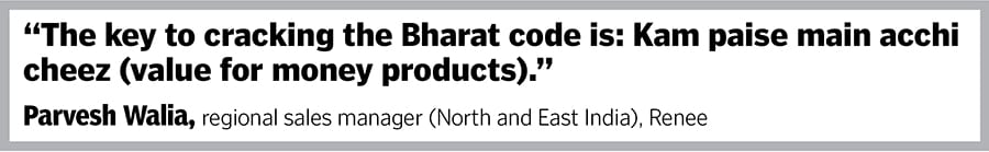 Walia explains why India and Bharat are similar in taste. “Bharat is aspirational, brand-hungry, and is in the midst of a beauty boom," says Walia, who has over two decades of experience in FMCG and has had stints with Dabur, ITC, Nivea, and Biotique. He joined Renee in March 2023. The legacy brands, he reckons, have been too exclusionist in their approach, language, and prices. The consumers in smaller towns, he explains, want glitz, gloss, and effective products at an affordable price. “The new generation needs new brands who speak their language, and understand their needs," he contends. “Small towns are big opportunities," he adds.