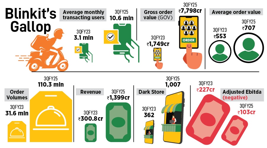 It reported poor results for the third quarter of the current financial year, showing rising losses in QComm, muted growth in food delivery, and high capital expenditure (capex) incurred on dark stores for 10-minute deliveries. Despite the celebratory mood around QComm, the financial numbers for Blinkit are no reason to pop the champagne. It showed soaring losses, although the Ebitda improved, on the back of a brisk expansion of dark stores.