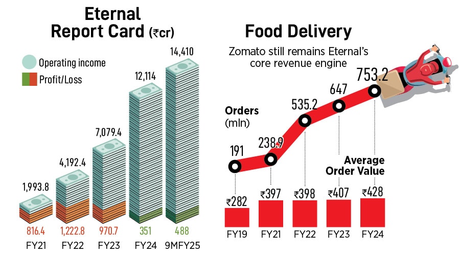 Food For Thought Meanwhile, for Eternal, trouble is brewing on another front. Its core business of food delivery is facing macro headwinds. “Currently, we are going through a broad-based slowdown in demand, which started during the second half of November last year," said Rakesh Ranjan, CEO (food delivery vertical) of Eternal, in the shareholders’ letter this January.