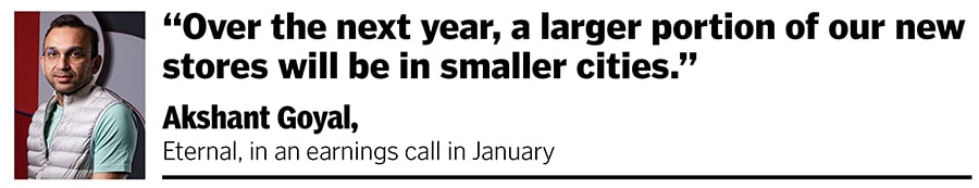 “We are seeing fairly healthy tractions in the smaller cities," CFO Akshant Goyal said in an earnings call in January. He asserted that there would be no let-up in the hinterland push: “Looking forward over the next one year, a larger portion of our new stores will be in these smaller cities compared to what we saw last year."