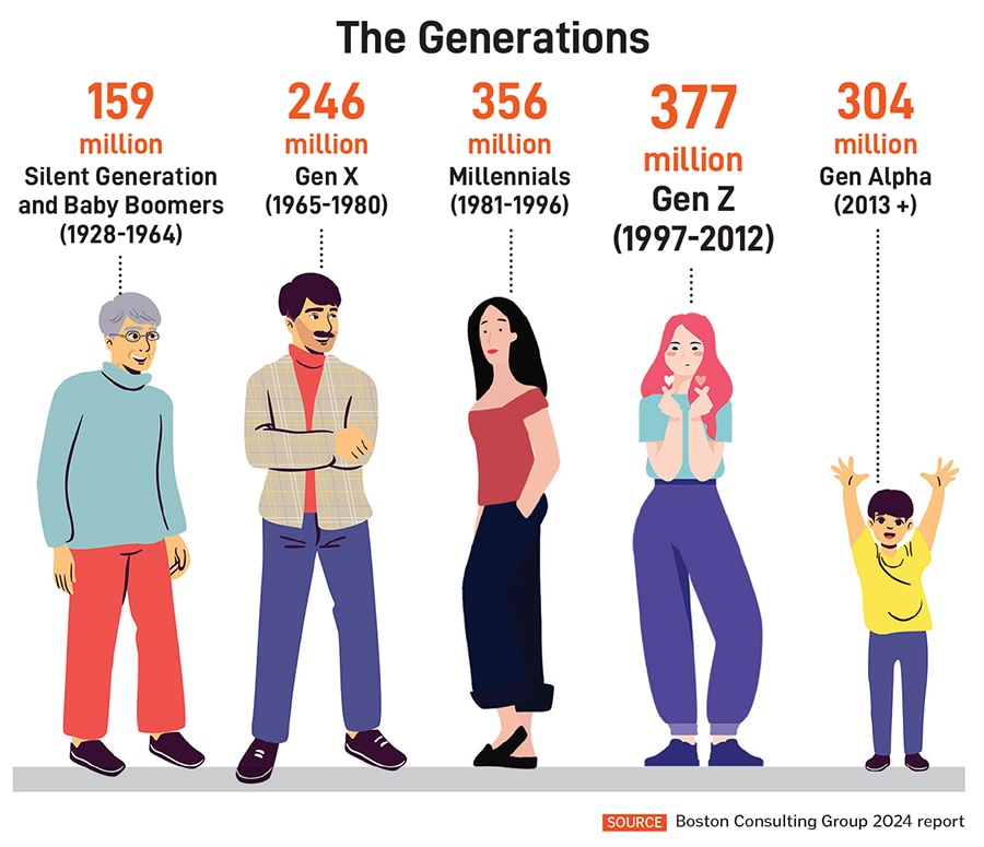 Gen Zs, those born between 1997 and 2012, were brought up on the internet and currently make up the biggest group of consumers. According to an October 2024 report by Boston Consulting Group (BCG) titled ‘How Gen Z is shaping the New India’ Gen Zs made for a cohort of 377 million, driving $860 billion of consumer spends in India, which is projected to rise to $2 trillion by 2035.