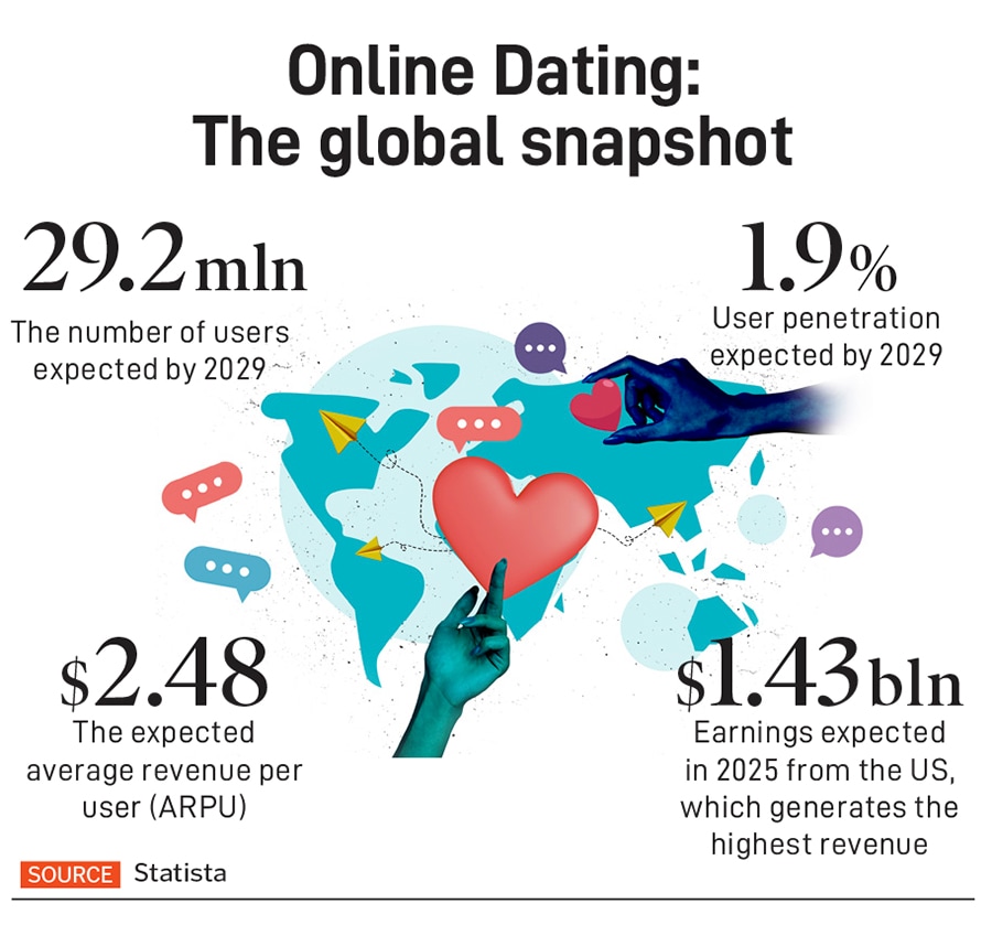 The global online dating market is estimated to grow from $11.02 billion in 2025 to $19.33 billion by 2033, according to Straits Research. The openness among urban Indian singles to online dating is extraordinarily high relative to anywhere else in the world, according to a top official at Match Group, Tinder’s parent company. Aditi Shorewal, communications lead for Tinder in India and Korea, says modern dating is all about meaningful possibilities, meeting people on your own terms and defining connection with authenticity. “Dating today is healthier, more honest, open, and focussed on mental well-being, compared to previous generations,” she says.