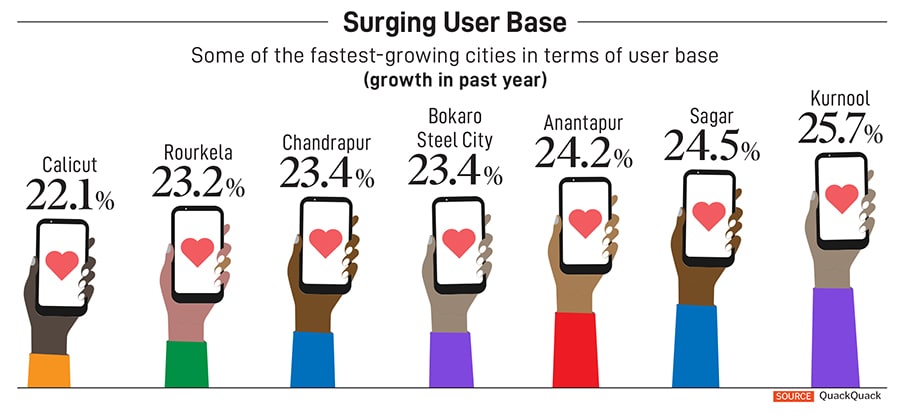 This September, 29-year-old Shweta from Bareilly in Uttar Pradesh was nudged by her friend to try out QuackQuack, a dating app. In her first tryst with online dating, she found quite a few young men in her town, with who she struck up virtual conversations. Then, about a month ago, she found a great match, and she has been dating the young man since. “We are actually considering a future together,” says Shweta, who was on the lookout for a serious relationship right from the beginning.