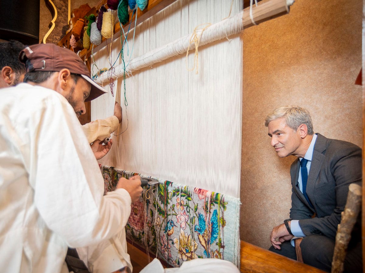 Govan observes weavers at work at Swadesh,an initiative by The Reliance Foundation to preserve and promote India’s arts and crafts