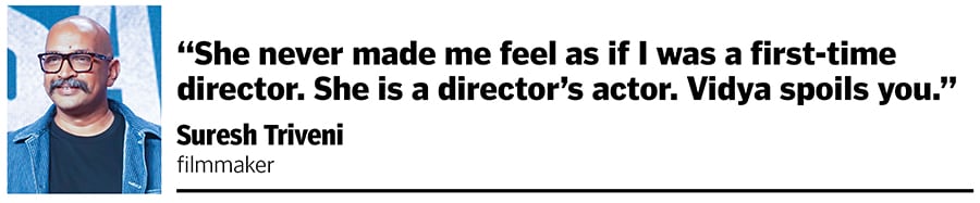 It’s not just her sincerity to her craft that has stayed with Triveni, but also the faith that a senior actor like her showed in the rookie filmmaker. The ad filmmaker from Chennai first met Balan when he came to Mumbai in 2004 prior to the release of Parineeta. As an associate, he was doing a documentary for BBC on film directors and was asked to interview the actor as part of the assignment. Having watched her in advertisements and music videos, and being enamoured by her screen presence, he boldly told Balan after the interview: “I will come to you with a script one day.”