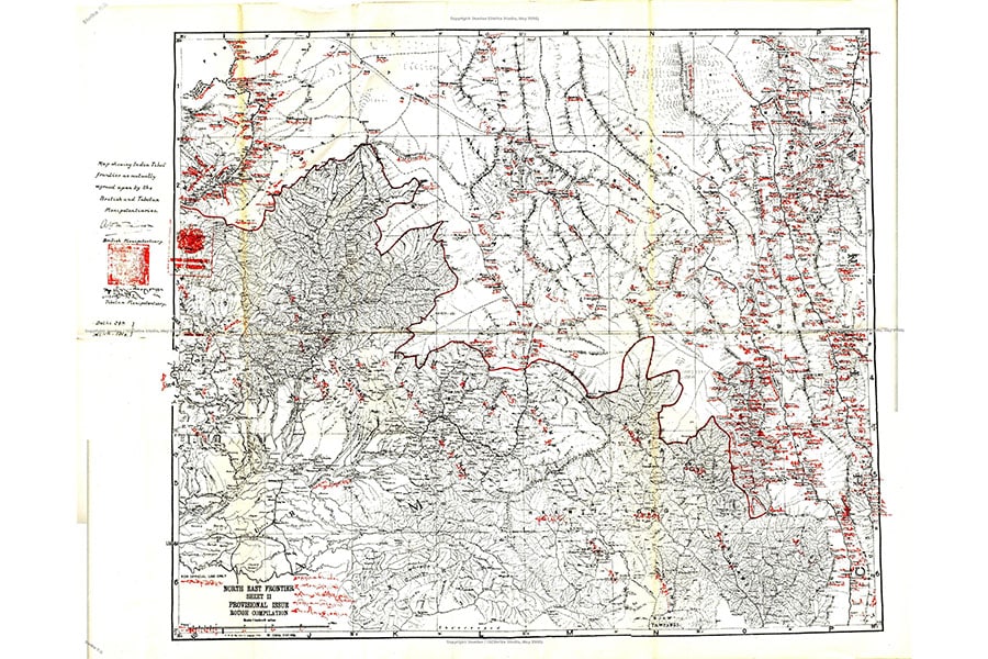The eastern portion of the McMahon line drawn on Map 2 shared by the British and the Tibetan delegates at the Simla Conference, 1914.Image: Public Domain/Wiki