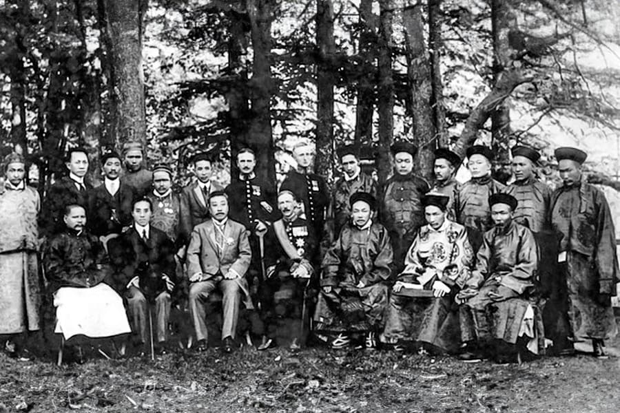 British, Tibetan and Chinese delegates at the Simla_Conference in 1913. Image: Alamy/Dinodia