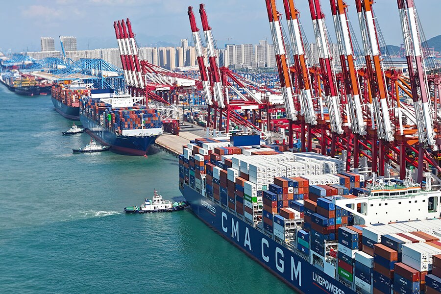 A view of the busy Qingdao Port handling containers headed for the Middle East, Africa, India, and Pakistan, in Shandong province, China, on August 30, 2023. Image: CFOTO/Future Publishing via Getty Images