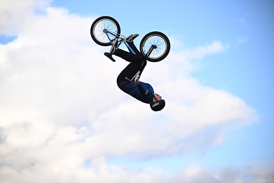 US rider Hannah Roberts participates in the women"s BMX Freestyle Park Final during the UCI Cycling World Championships in Glasgow, Scotland, August 7, 2023. The 21-year-old American trick artist won the gold, posting a score of 91.04 points during her opening run to secure her fourth straight title and fifth overall.