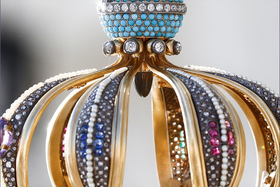 A bullet used during the attempted assassination of Pope John Paul II is seen in the crown on the statue of Holy Mary of Fatima at Parque Tejo, Lisbon, Portugal, August 6, 2023. Pope Francis led the holy mass for World Youth Day during his recent apostolic journey to Portugal.