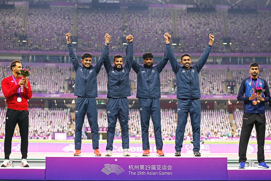 After breaking the Asian record at the World Championship, the quartet of Muhammed Anas Yahiya, Muhammed Ajmal, Amoj Jacob, and Rajesh Ramesh broke the national record to clinch the gold in the 4 x 400m Relay.
