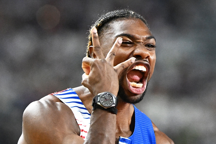 The US"s Noah Lyles celebrates after his team won the men"s 4x100m relay final during the World Athletics Championships in Budapest, Hungary, on August 26, 2023. Lyles blazed the field in the 100 final in 9.87 seconds, then won his specialty event 200m in 19.52 seconds and ran the anchor leg on Team USA"s 4à—100-meter relay. Lyles is multi-faceted: a musician, rapper, and an artist. Fashion, however, is his passion.