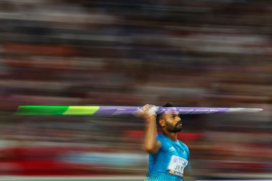 India’s Kishore Jena competes in the Men"s Javelin Throw Final during the World Athletics Championships in Budapest, Hungary, on August 27, 2023. Jena finished fifth, his career"s best performance, with a throw of 84.77m. After Jena’s visa application for Budapest was earlier cancelled, his counterpart Neeraj Chopra had for rallied support and helped get Jena to Budapest on time.
