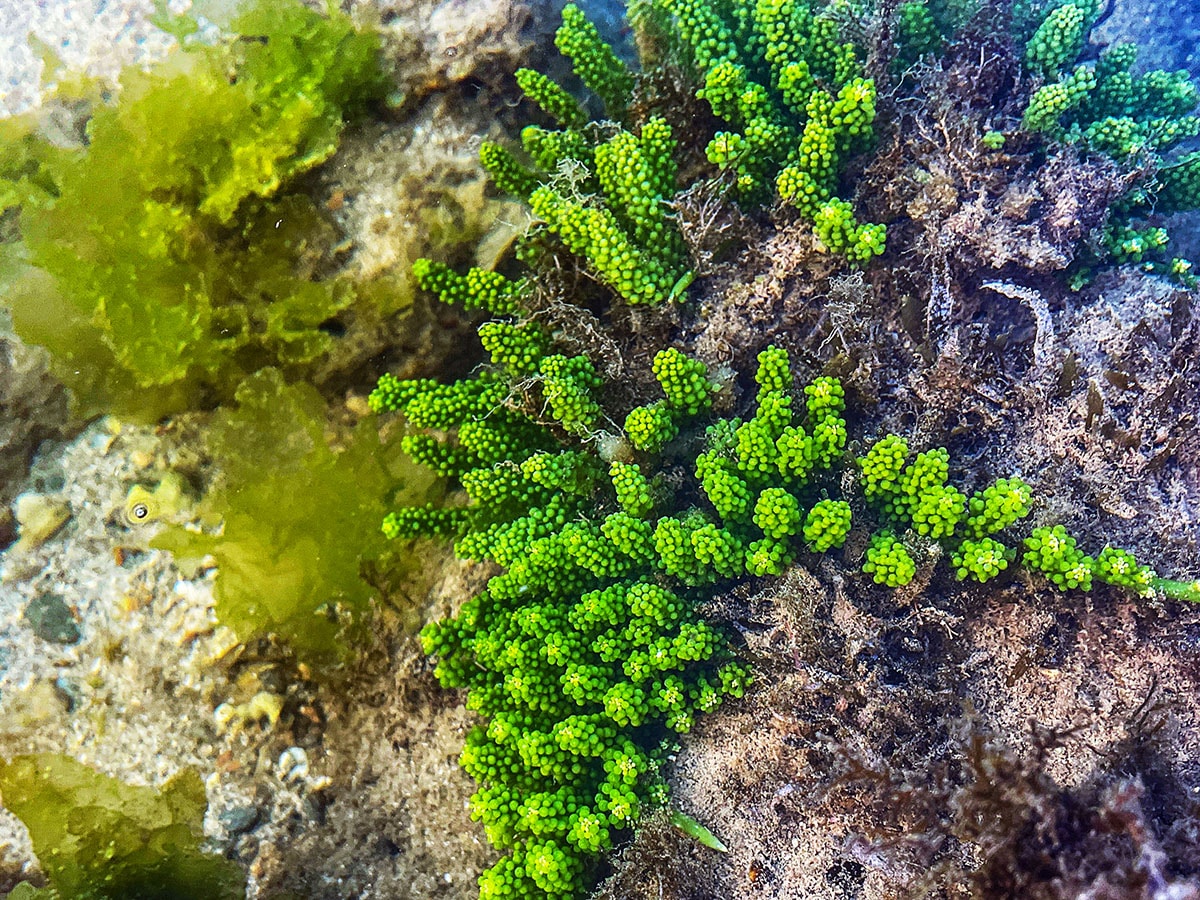 Sea grapes, found along Shivrajpur"s coast, are a nutrient-packed algae cherished in Japan as an exotic superfood. Sea grapes have a fresh, briny, oceanic flavor, making them ideal as a unique ingredient. Image: Veidehi Gite