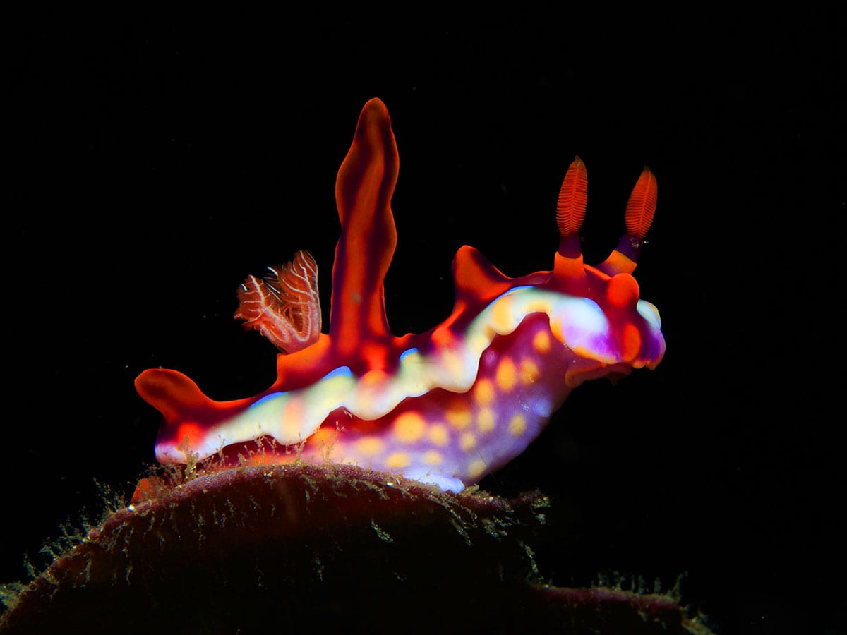 The vibrant array of sea slug species is nothing short of extraordinary, with each variety boasting its own unique brilliance. Among them is this striking Miamira magnifica nudibranch, a colourful gem recently spotted in Indonesia, Southeast Asia. Image: Shutterstock