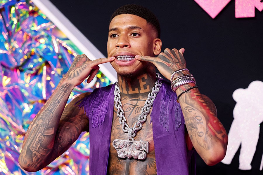 Rapper NLE Choppa attends the 2023 MTV Video Music Awards at the Prudential Center in Newark, New Jersey, U.S., September 12, 2023. Choppa had to deal with a backlash from fans after he performed his version of Nelly"s 2009 classic "Hot In Herre" at the Awards. Firing back, Choppa said his version of "It"s Getting Hot" has 30 million streams on Spotify.