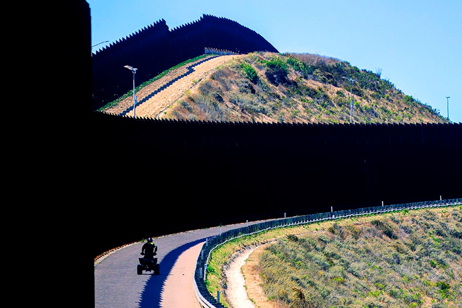 A US Customs and Border Patrol agent patrols the US-Mexico border fence in San Ysidro, California, on September 14, 2023. As the number of migrants attempting to cross the southern US border rises, Border Patrol agents have begun releasing them on US streets shortly after they cross from Mexico into California.