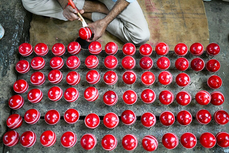 A worker polishes leather cricket balls at a Meerut, Uttar Pradesh workshop on September 14, 2023. As working with animal leather is condoned by some Hindu communities, those on the lower rungs of India"s traditional caste hierarchy have taken on the crucial trade of making cricket balls.