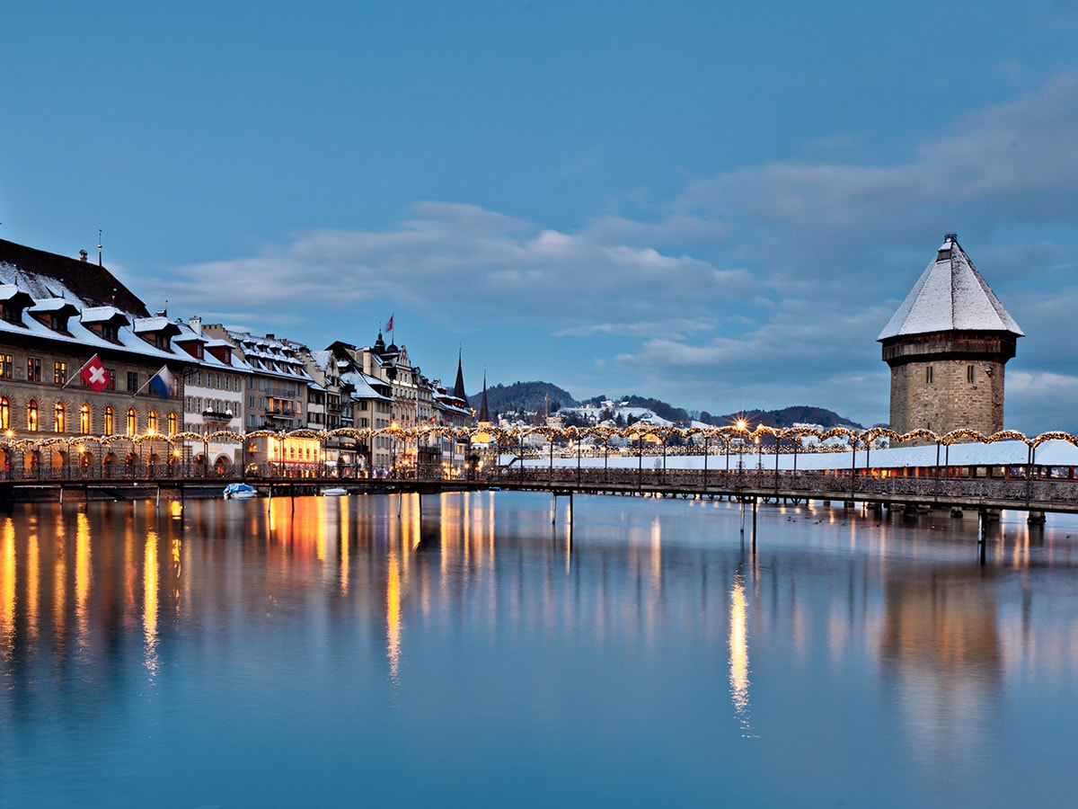 In winter, the city of Lucerne transforms into a magical destination, illuminated by the sparkling lights of traditional Christmas markets, music festivals, and the renowned LiLu Light Festival. There’s a new ice rink that enhances the festive atmosphere, complete with live concerts, fondue, and mulled wine. The city also offers numerous winter excursions and sports in the nearby mountains.