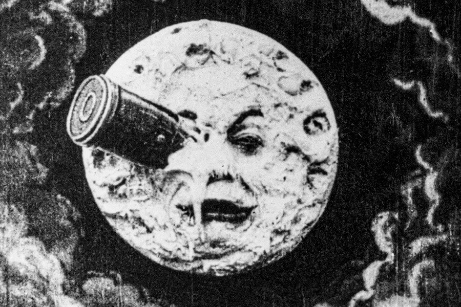 Landing on the eye of the Moon - an iconic scene from the 1902 science-fiction adventure film ‘A Trip to the Moon’. Directed by George Melies, the silent animated film about a group of astronomers who travel to the Moon in a cannon-propelled capsule, became one of the most influential films in cinematic history.