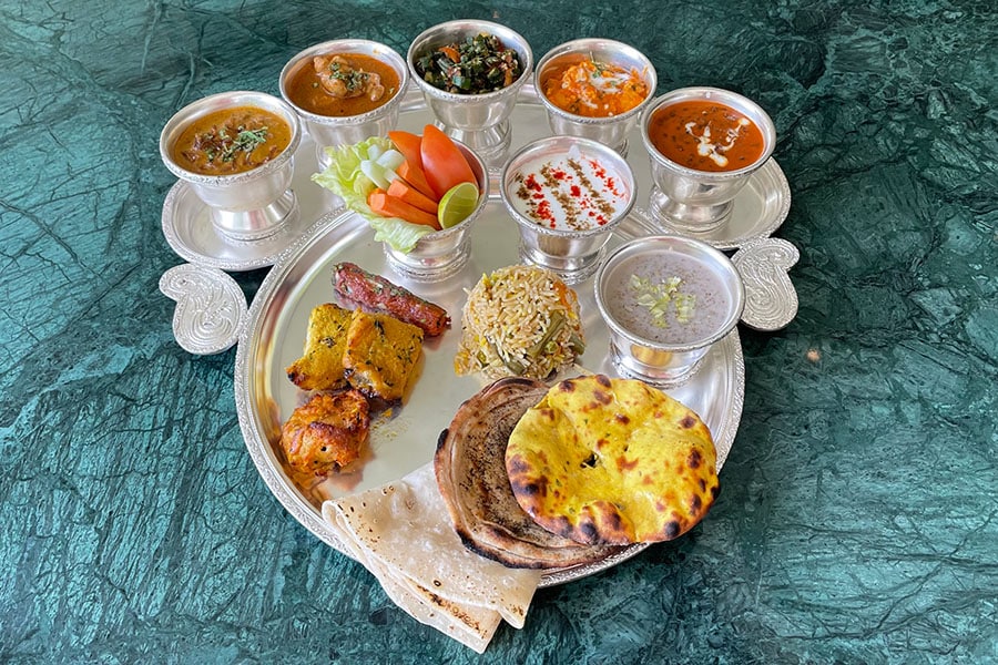 Badshaahi Parosa is a royal banquet uniting the beloved dishes of the Mughal emperors, all on a single plate. Image: Veidehi Gite