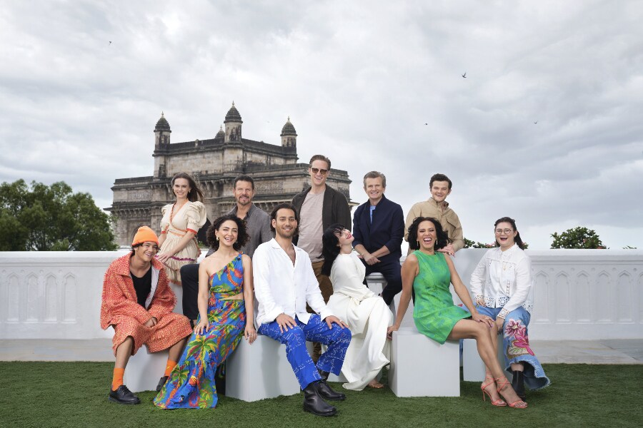 The team of The Lord of The Rings: The Rings of Power poses against the Gateway of India. (L-R back): Ema Horvath (Eà¤rien), Lloyd Owen (Elendil), JD Payne (Showrunner/Executive Producer), Charles Edwards (Celebrimbor), Robert Aramayo (Elrond). (L-R front): Tyroe Muhafidin (Theo), Nazanin Boniadi (Bronwyn), Maxim Baldry (Isildur), Markella Kavenagh (Elanor ‘Nori’ Brandyfoot), Sara Zwangobani (Marigold Brandyfoot), Megan Richards (Poppy Proudfellow) Image: Amazon Studios