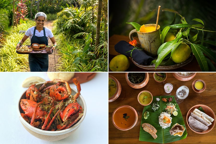 Stepping out of the villa was like stepping into a secret botanical garden. Towering palms swayed gently in the breeze, while bursts of colour exploded from heliconia, lilies, birds of paradise, hibiscus, and frangipani. The culinary delights, with curry leaves, tulsi (holy basil), lemon trees, and kokum added their aromas to the air. A hint of tanginess wafted in from the bimbla sour berry, while the cashew and coconut trees hinted at the region"s bounty.