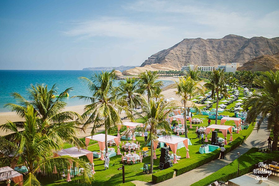 Oman"s rugged mountains and pristine beaches offer a stunning backdrop for exchanging vows. Courtesy - Shaadi Squad, Photography - The Wedding Salad